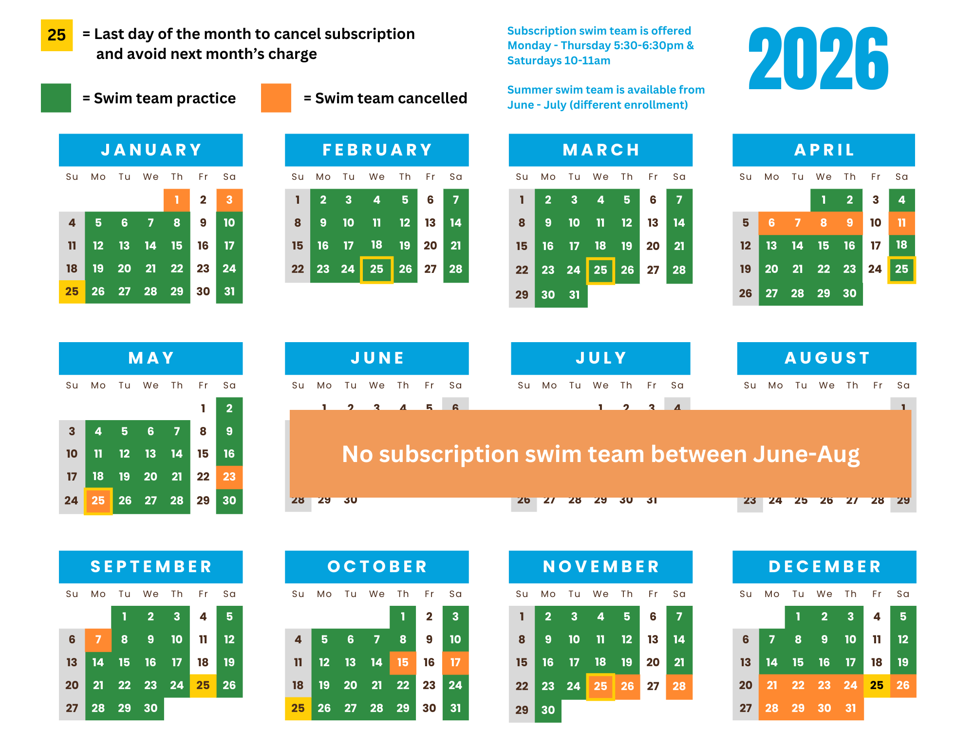 Fall / Winter / SPring Subscription Swim Teams